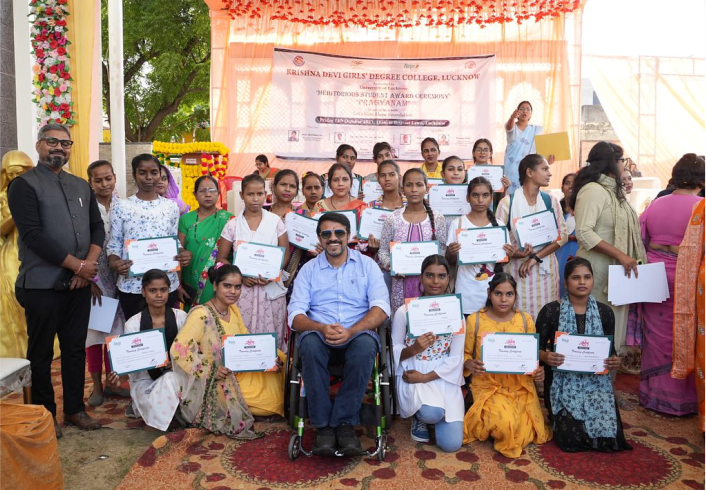 The Let's Give Hope Foundation and Krishna Devi Girls Degree College collaborated to host the college's annual Pragyanam talent-felicitation event on October 13, 2023 at Brijwasi Lawn. Professor Alok Kumar Rai the (Vice Chancellor of Lucknow University) was the chief guest in the program. Squadron leader @abhai.official (joint secretary of the Indian Disabled cricket council) marked his presence as a Guest of Honour. We also had the pleasure of having Mrs Manisha Singh ( Additional Deputy commissioner of police, Lucknow Central) and Prof. B.L. Sharma ( Assistant Director, Directorate of Higher education Prayagraj) as our Special Guest. Meritorious students in academics and sports were awarded with trophies and mementos. Thereafter, the students of Let's Give Hope Foundation were honored with certificates for their skill training in stitching and Mehndi. We would like to thank Principal, professor Sarika Dubey and her staff for their corporations and support in making this program a success. #youthdevelopmentprogram #youthdevelopment #youthempowerment #youth #university #collaboration #netritva #college