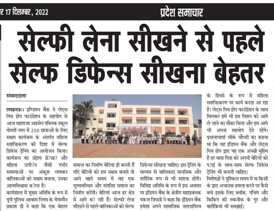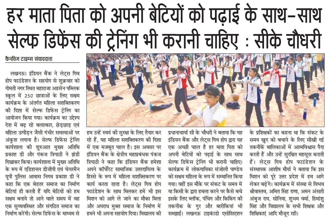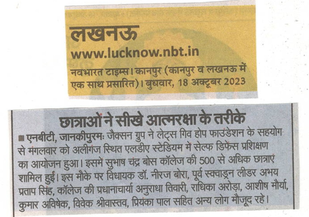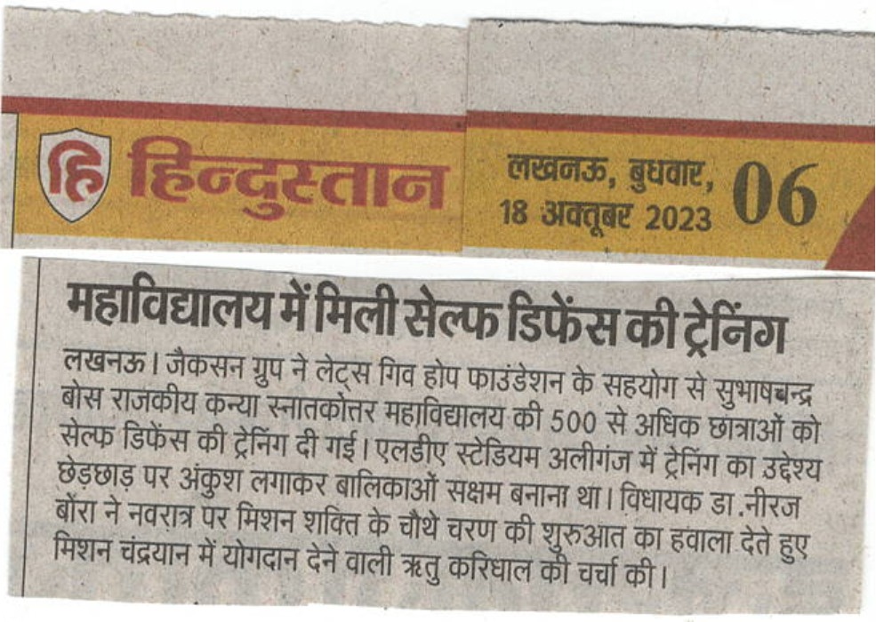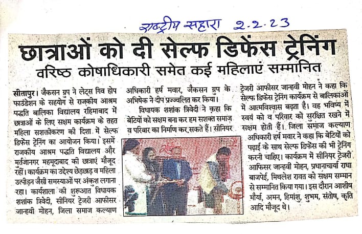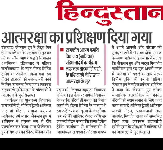 जैकसन ग्रुप ने लेट्स गिव होप फाउंडेशन के सहयोग से आज सेल्फ डिफेंस ट्रेनिंग का आयोजन किया #breaking।