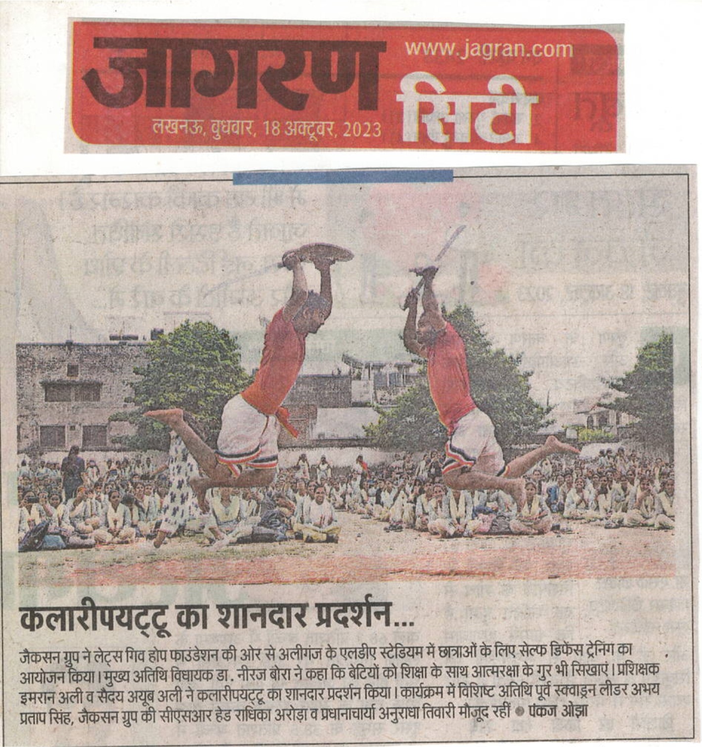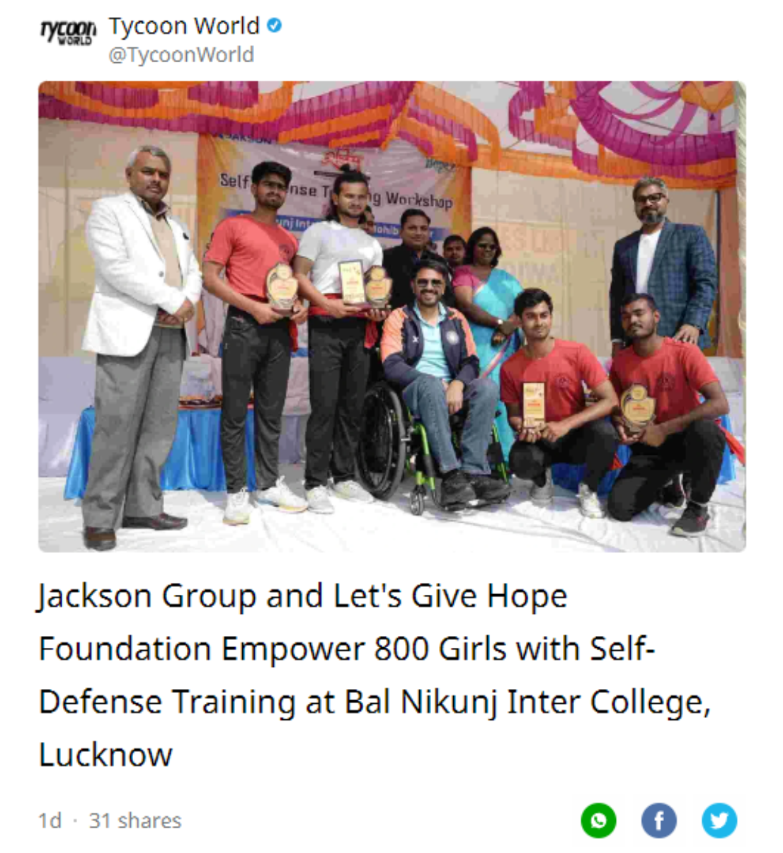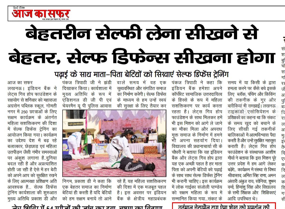 जैकसन ग्रुप ने लेट्स गिव होप फाउंडेशन के सहयोग से आज सेल्फ डिफेंस ट्रेनिंग का आयोजन किया #breaking।
